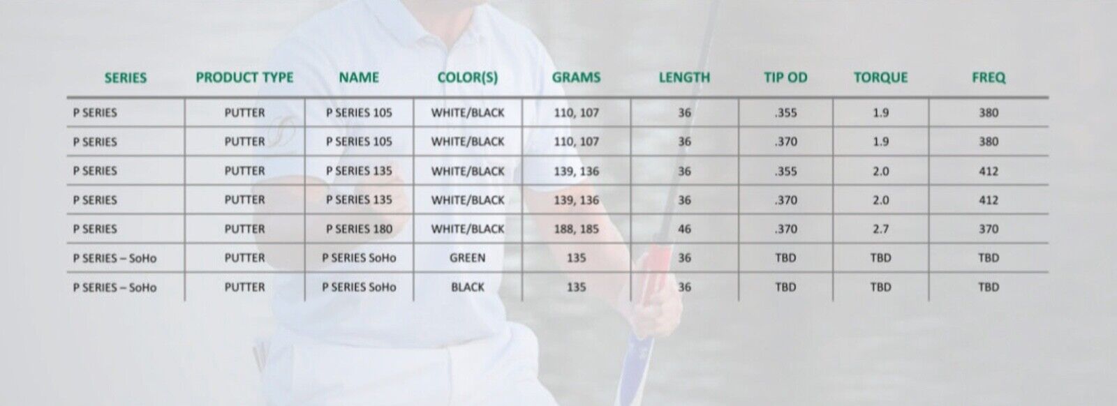 LA GOLF P Series 135 Putter Shaft 36" Uncut White Choose Tip Size New