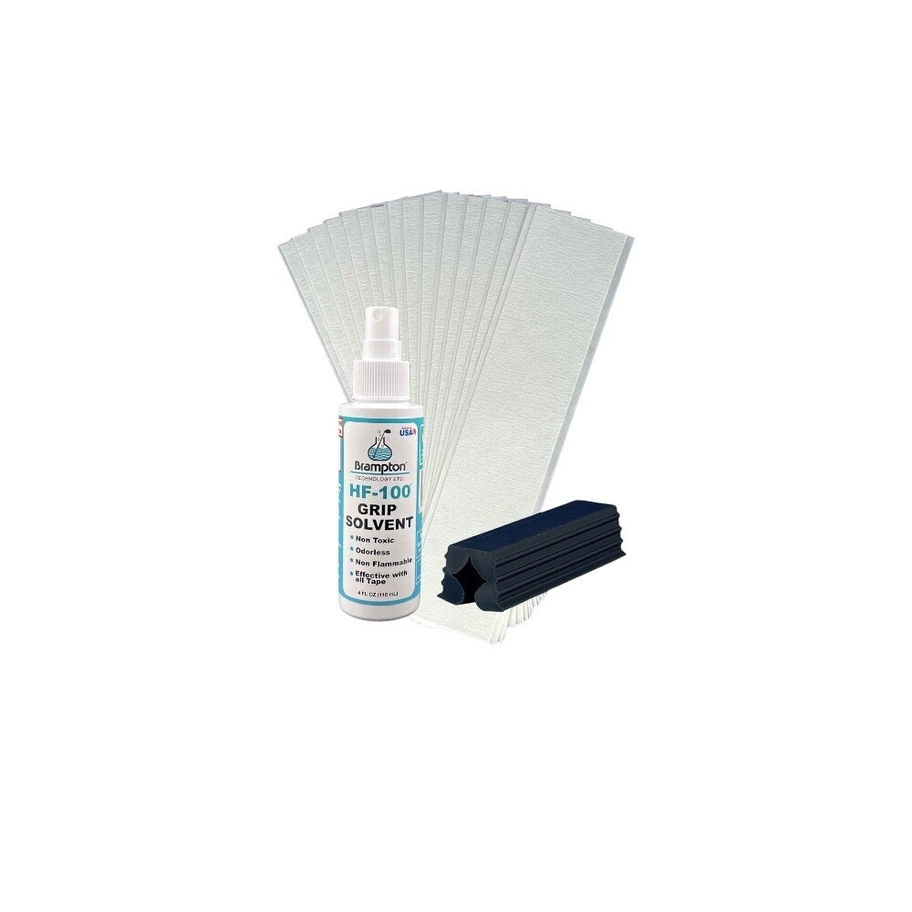 Includes 13 Grips, Grip Kit (4oz HF-100® Grip Solvent, 15 – 2” x 10” tape strips, Rubber Shaft Clamp)